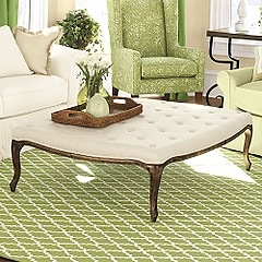 Ballard Designs has a new wood and tufted coffee table that looks pretty good on paper at least. At $700, it's probably worth it.